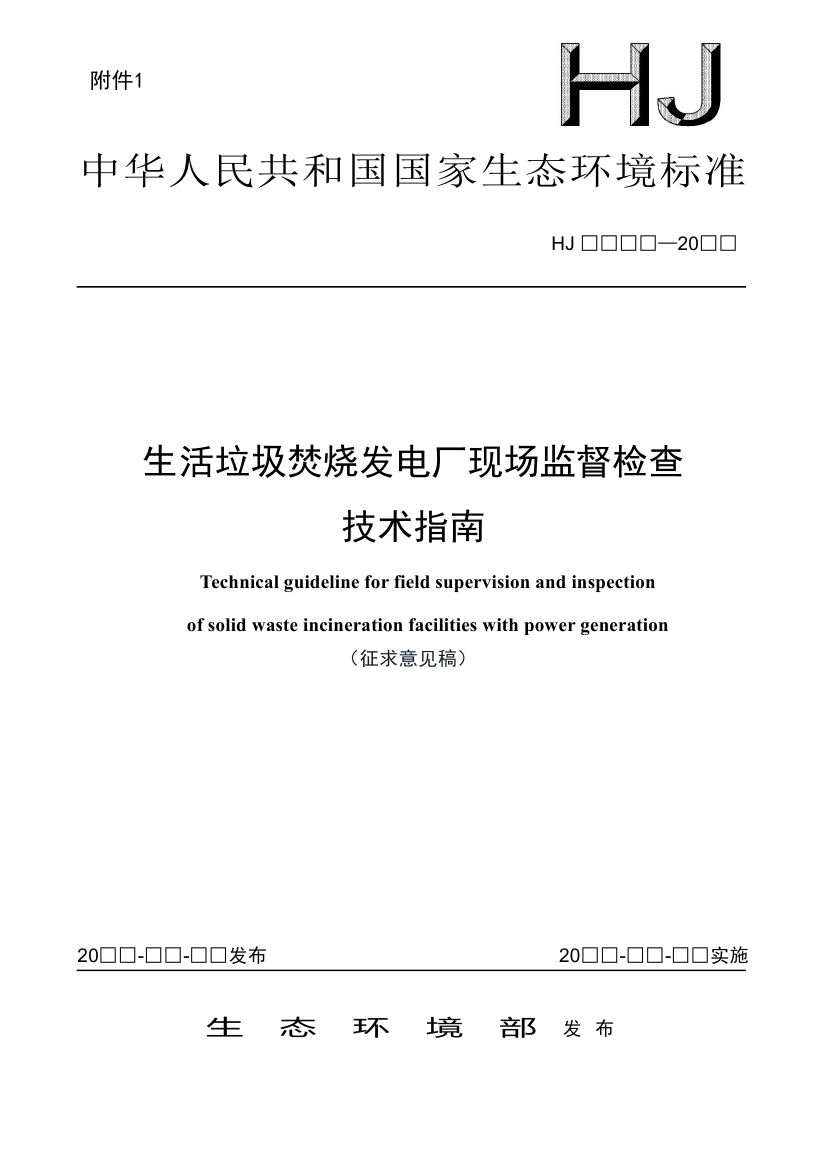 附件:1.生活垃圾焚燒發(fā)電廠現(xiàn)場(chǎng)監(jiān)督檢查技術(shù)指南(征求意見(jiàn)稿)